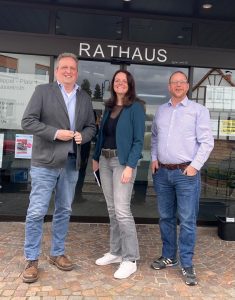 Von links: Matthias Pfeifer, Nicole Dein und Ruben Hundhausen vor dem Hasselrother Rathaus